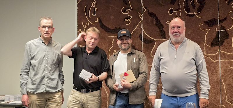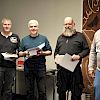 Für 40 Jahre Mitgliedschaft im SEV durften Rolf Ellenberger, Heribert Wenger und Christoph Zingg Urkunde, goldener Pin und ein kleines Präsent entgegennehmen. Matthias Sterchi und Hanspeter Roos erhielten den silbernen Pin für 25 Jahre Mitgliedschaft.